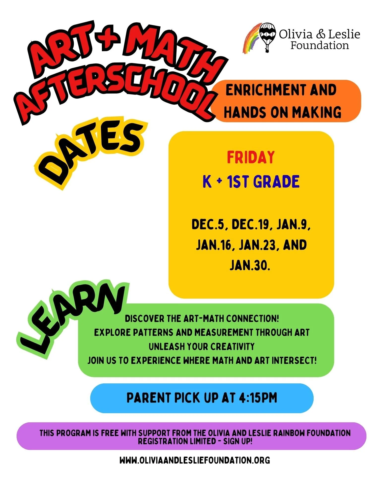 Allow my child to participate in the Art + Math Afterschool Program.